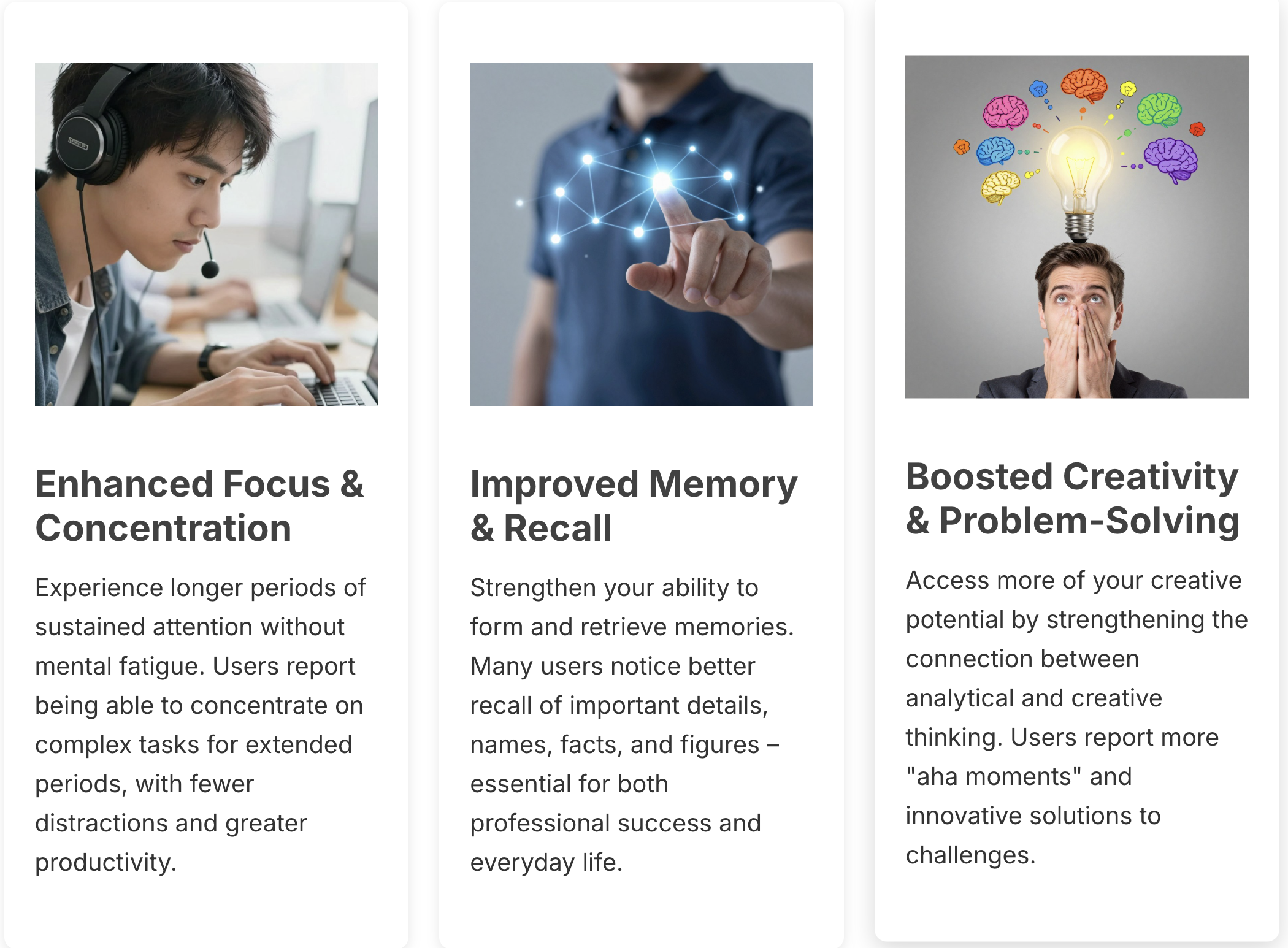 “After struggling with afternoon brain fog for years, I was skeptical that an audio program could help. But within two weeks of using Neuro Energizer, I noticed a significant difference. My focus stays sharp throughout the day, and I’m accomplishing more without feeling mentally drained. It’s been a game-changer for my productivity.”