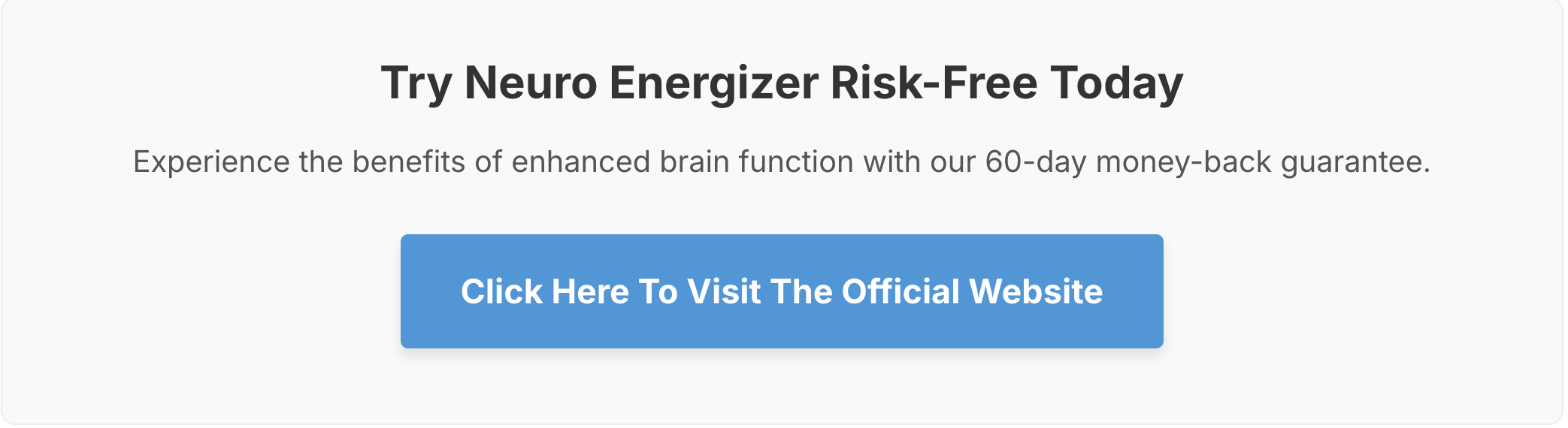 This risk-free guarantee allows you to experience the benefits of Neuro Energizer without any financial risk. We believe you'll be amazed by the results, but we want you to feel completely comfortable making this investment in your cognitive health.