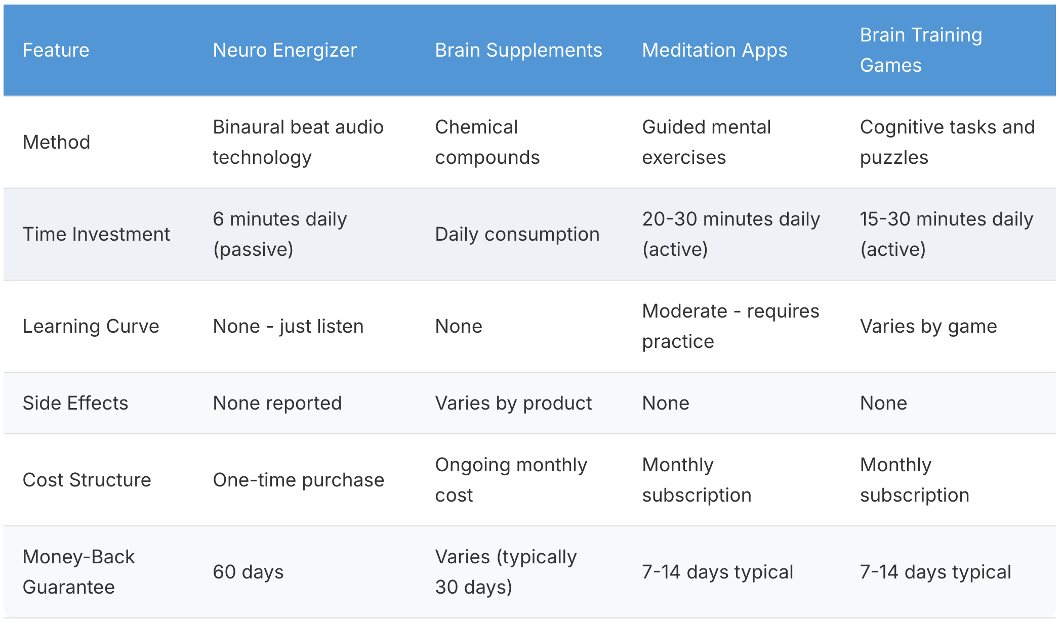 Neuro Energizer vs. Other Cognitive Enhancement Methods